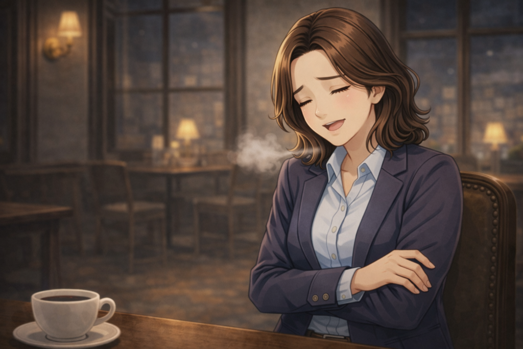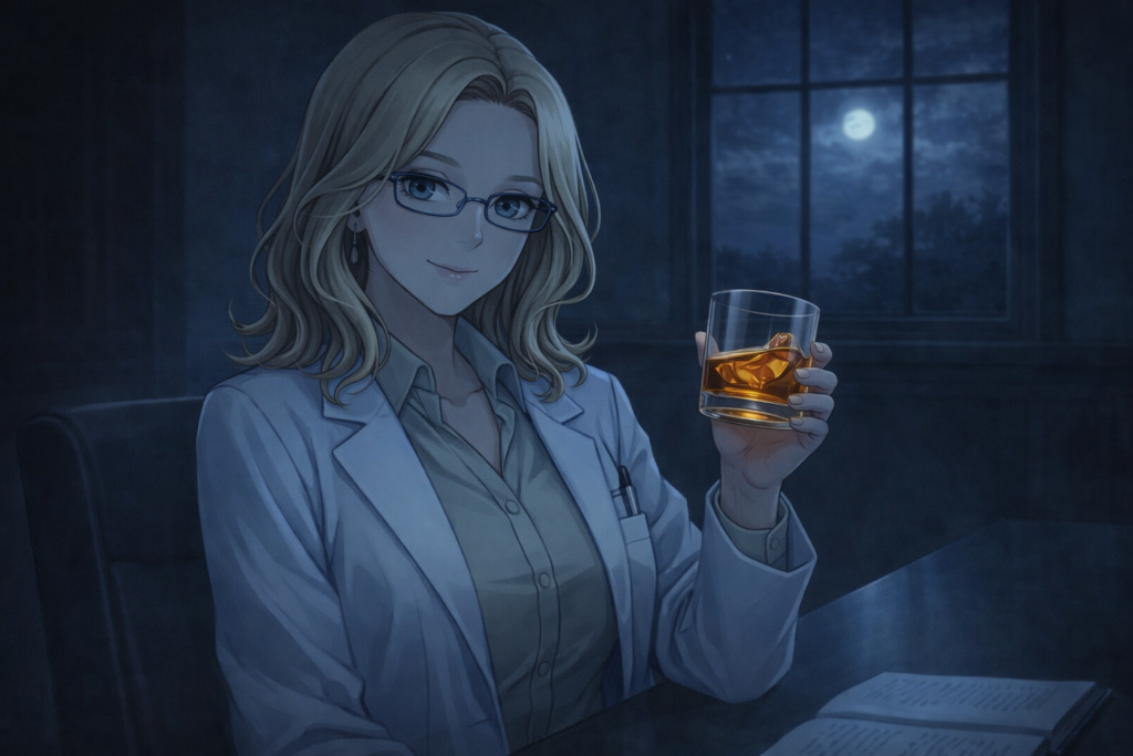 彼女は琥珀色のグラスを揺らしながら、静かに微笑んだ。